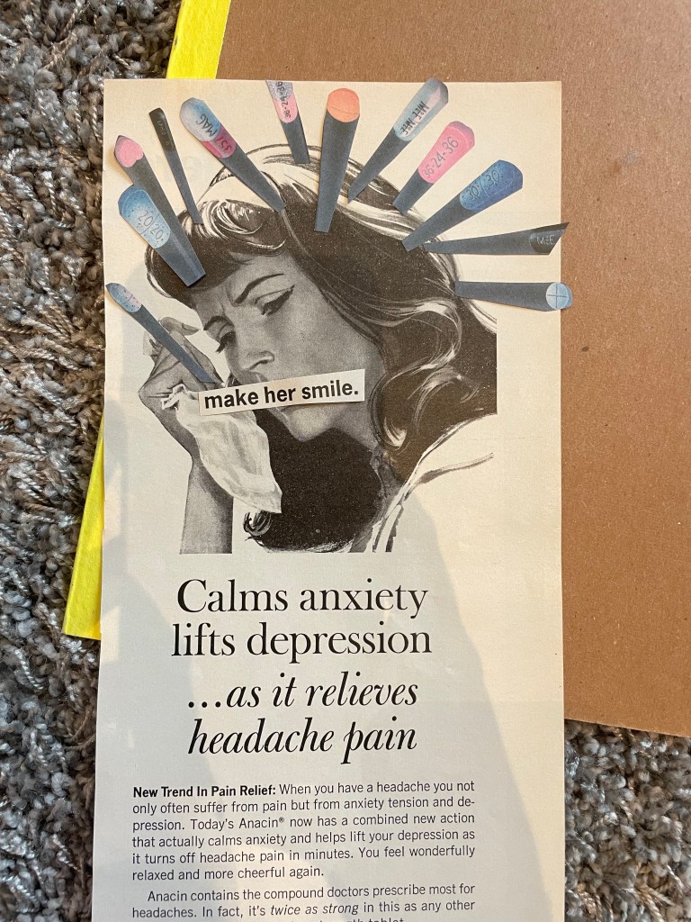 I have so many old magazines and cutouts, but I am afraid of commitment. My clips and cutouts live in different ziplock baggies. I made this collage about a year ago, but have yet to glue it together. I just know something is missing and something can make it better. So I’ll keep waiting for that something and I hope I find it someday soon.