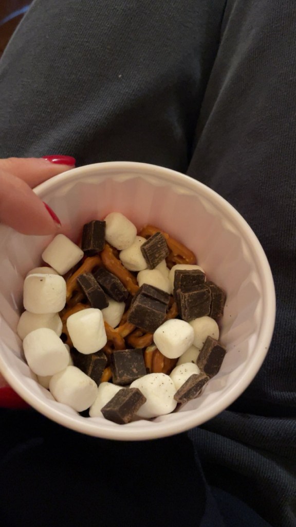 I never really grew up liking chocolate, but have grown to like dark chocolate. I never loved graham crackers so whenever I would make s’mores I would typically just eat the marshmallow. Recently I have made the best snack ever, a Lucy s’more. It consists of mini marshmallows, pretzel snaps, and dark chocolate chips and it is sooo yum!